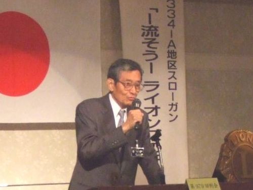 一同起立して国旗に敬礼、国歌「君が代」斉唱並びに「ライオンズクラブの歌」合唱を行った。