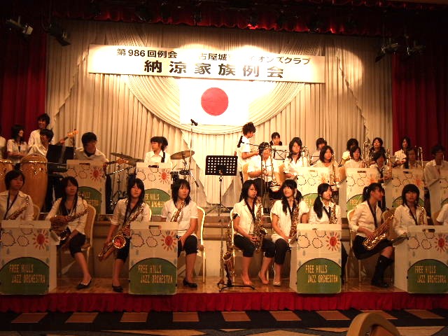 第2部はL鍋野の進行で18時45分より開始。Free Hills Jazz Orchestraの演奏で始まり、L安田の開会の挨拶、JAZZの演奏を聴き、L兼本の乾杯の音頭があり食事団欒へ。