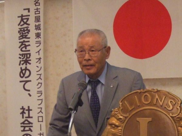 L高橋の進行により、開会の挨拶とゴングはL兼本。L松原のライオンズの誓い唱和に続き、会長挨拶。今年度の新入会員目標8名に対し、現時点では1名のみ。目標に少しでも近づけるよう頑張ろう、と、会員増強の話がありました。