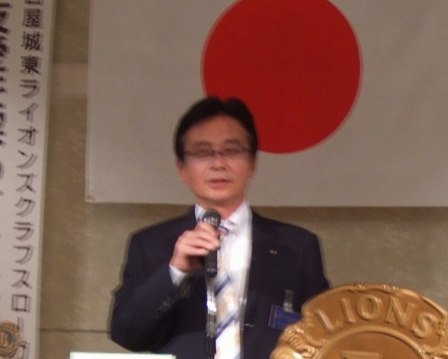 国際協会のテーマ「Move to Grow」そして地区ガバナーのキーワード「魅力と活力の再生」を披露、我が城東の伝統を遵守しながら国際性を強調、会員の増強に努めること、青少年の育成、全員参加の運営を試みたいと力強く話されました。